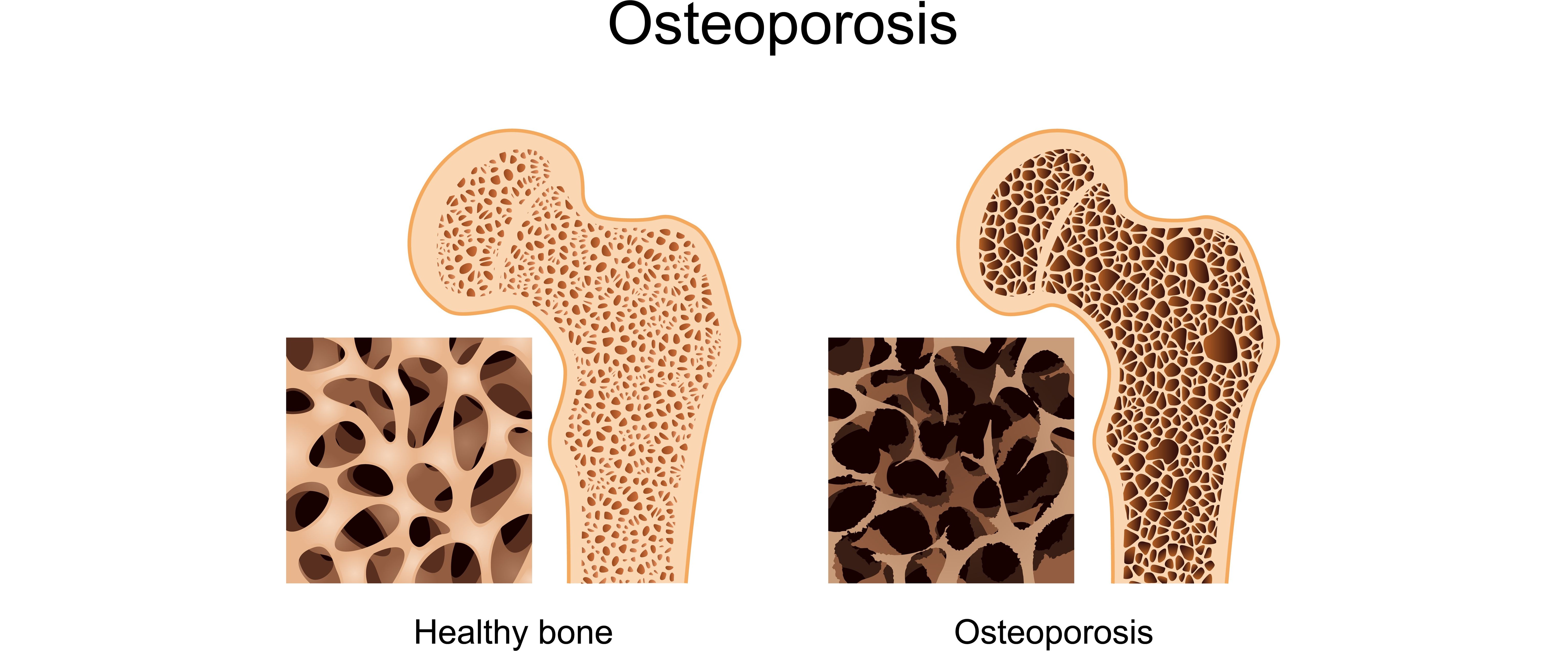 What is osteoporosis? Osteoporosis is a disease in which bones become weak and are more likely to fracture or break. It is called a “silent” disease because bone loss often occurs without your knowing it. Until about age 30, your body forms enough new bone to replace the bone that is naturally broken down by the body (a process called bone turnover). Your highest bone mass (size and thickness) is reached between ages 20 and 25, and it declines after that. After menopause, however, women begin to lose bone at an even faster rate. Osteoporosis develops when your body cannot replace bone as fast as it is broken down.Who is at risk for osteoporosis? Menopause. Other factors that can lead to osteoporosis include: Hormonal conditions (such as hyperparathyroidism, hyperthyroidism, diabetes, hypercortisolism, or hyperprolactinemia) Anorexia nervosa (a condition associated with very poor nutrition and abnormal ovarian function) Too much exercise or stress that leads to loss of menstrual periods If you have gone through menopause (even if you have been taking hormone therapy for a long time), have had a fracture (bone break), or are considering treatment for osteoporosis, a bone density test (DXA scan) can help determine your risk of fracture. If you are over 65 and do not have any of these risk factors for osteoporosis, you should still have a bone density test. Osteoporosis risk factors Family history Postmenopausal Premenopausal with irregular or no menstrual periods (amenorrhea) Thin or small frame Caucasian or Asian Diet low in calcium and vitamin D Little or no exercise Cigarette smoking Drinking too much alcohol Therapy with a steroid (such as prednisone) for any significant length of time Too much bone loss (osteoporosis) can lead to fractures, which can cause serious health risks, including disability and premature death. How is osteoporosis prevented and treated? You can take these steps to prevent bone loss: Get enough calcium and vitamin D, either through diet or supplements (at least 1,000–1,200 mg of calcium; 400–800 IU of vitamin D daily under age 50 or 800–1,000 IU after age 50) Do weight-bearing exercises and stay physically fit Avoid smoking Don’t drink too much alcohol Even with a healthy lifestyle, however, you may still need additional therapy to protect against bone loss and fractures. Your doctor may need to prescribe medications such as: Bisphosphonates (alendronate, risedronate, ibandronate, zoledronic acid) Raloxifene Teriparatide Estrogen (when also prescribed for the relief of menopausal symptoms) Calcitonin All of these treatment options are effective, but may have side effects. Talk with your doctor to determine whether you need treatment, and which option is best for you. Questions to ask your doctor Am I at risk for osteoporosis? How often should I have a bone density test? Should I take calcium and vitamin D supplements? How much do I need? What else can I do to keep my bones strong? Should I see an endocrinologist?